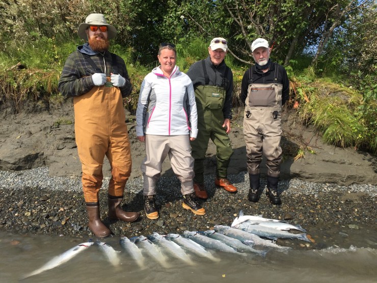 The other fishing we’ve done is river fishing. We have been using Widespread Fishing to help us fish the Kenai. Mindy, one of the owners of the fleet, is beyond amazing. She is super capable and makes me (remember – I’m basically allergic to fishing!) somewhat enjoy flipping sockeye. Mindy is such a great teacher that just the other day, my brother and I were killing it with he sockeyes while my dad and his friend were floundering in the river. (See what I did there.)