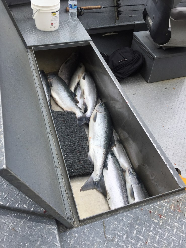 The other fishing we’ve done is river fishing. We have been using Widespread Fishing to help us fish the Kenai. Mindy, one of the owners of the fleet, is beyond amazing. She is super capable and makes me (remember – I’m basically allergic to fishing!) somewhat enjoy flipping sockeye. Mindy is such a great teacher that just the other day, my brother and I were killing it with he sockeyes while my dad and his friend were floundering in the river. (See what I did there.)